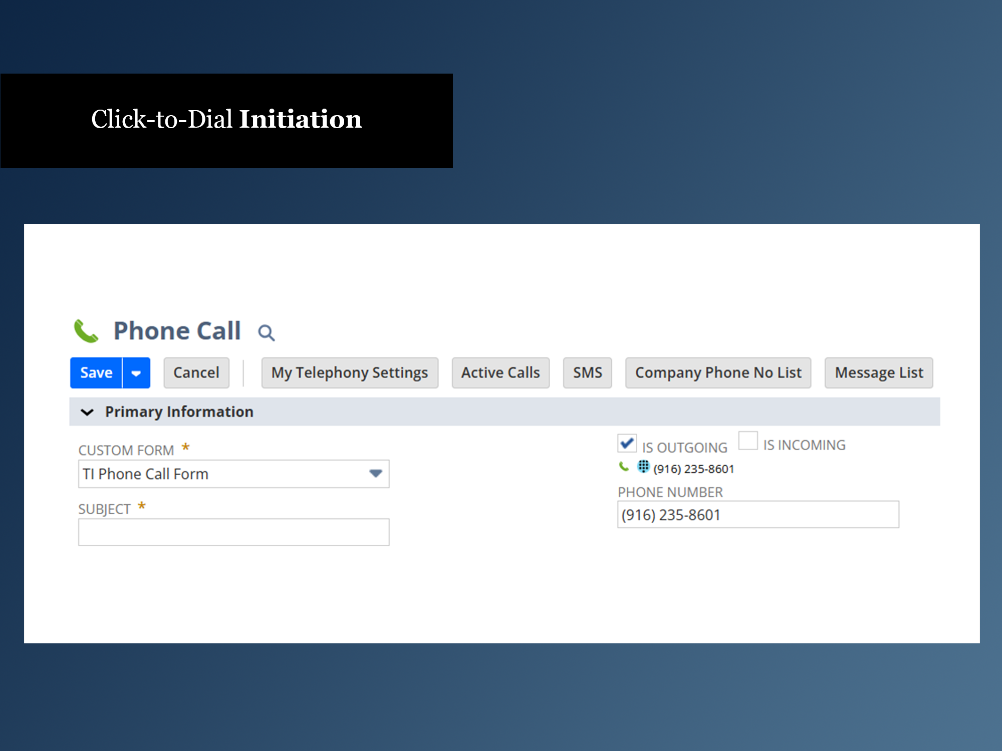 ever leaving the record - Call from a specific number or multiple numbers directly from the NetSuite contact record