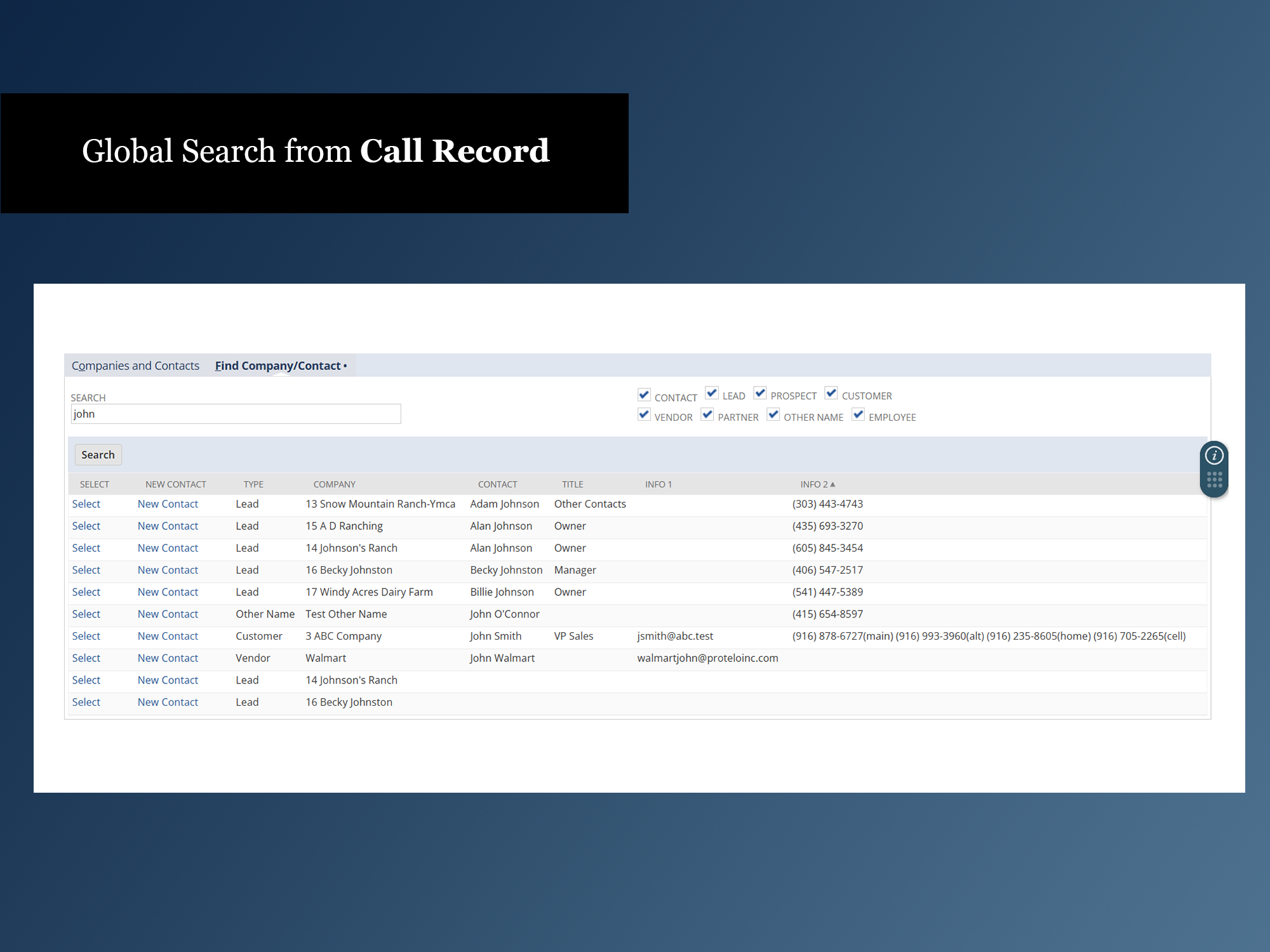 - Access NetSuite global search directly from the phone call record—lookup multiple contacts without