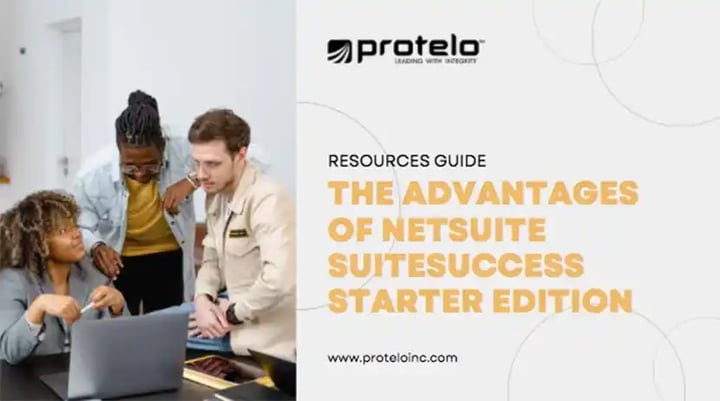 SuiteSuccess is a complete solution enabling companies to be up and operating quickly with pre-configured reports, KPIs, value-driven dashboards, workflows, and reminders for strategic business needs. Leverage NetSuite’s experience with over thousands of customers and Protelo’s industry-specific expertise to improve business efficiency, with less cost, less time, and more return-on-investment. Learn more with NetSuite’s Leading practices for SuiteSuccess Starter Datasheet.