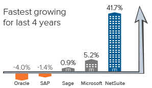 More than 43,000 customers run NetSuite—the world’s # 1 cloud business management suite, and the world’s fastest-growing financial management solution for four years running. |