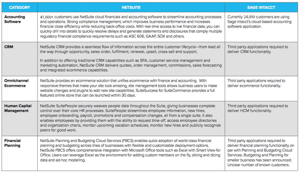 If you also experience these frustrations with Sage, it’s time for an upgrade! Move to a true cloud-based ERP system that is completely customizable. Learn the top reasons why fast-growing businesses choose NetSuite over Intacct. NetSuite is the #1 ERP software on the market. Contact us if you’d like to learn more about NetSuite pricing, implementation and services. When you are comparing NetSuite vs Sage, there really is no comparison between these two ERP systems.